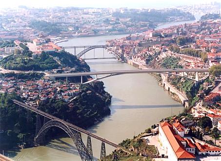 Três pontes que ligam o Porto a Vila Nova de Gaia. A primeira é a Ponte D. Luiz I, a segunda é a nova Ponte do Infante e por fim a Ponte D. Maria