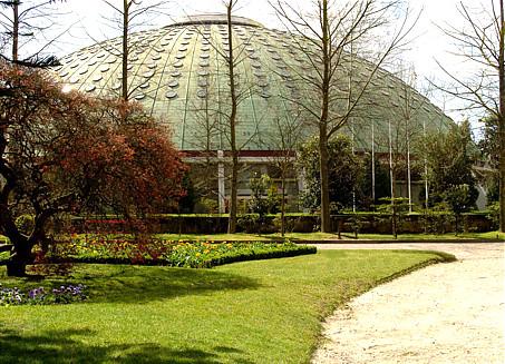 O Palácio de Cristal rodeado pelos seus bonitos jardins.