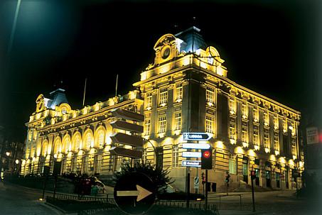 Fotografia nocturna da estação de S. Bento onde se podem encontrar espectaculares paineis de azulejos.