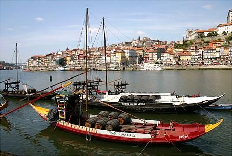 Os barcos Rabelo repousam no Douro com as suas pipas de Vinho do Porto